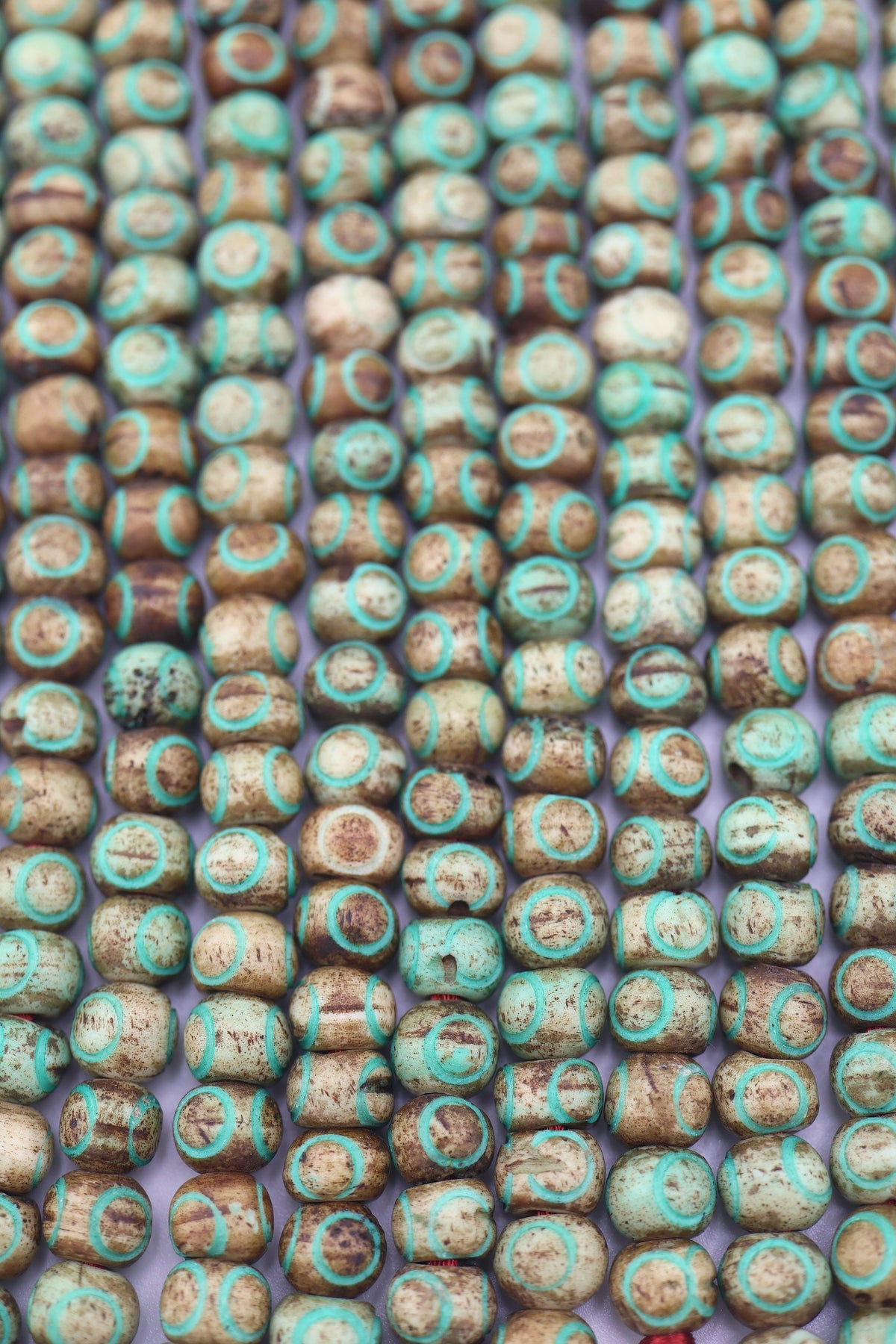 These carved bone beads have such a unique personality—warm earthy brown tones are accented with turquoise-painted circle patterns, giving each bead a rustic, tribal-inspired charm. Their hand-carved details and natural texture make them perfect for adding a touch of artisan authenticity to your jewelry and craft projects.