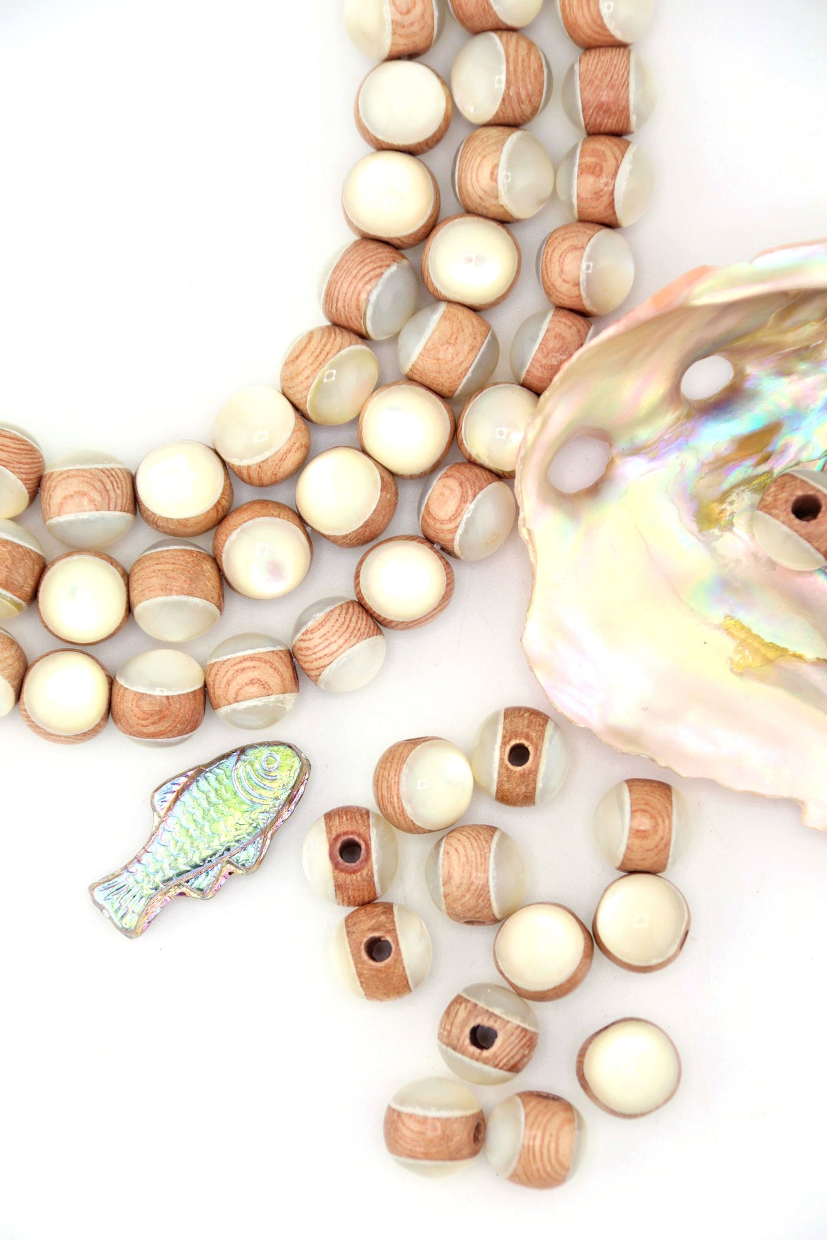 Each 9mm round bead is made by inlaying shimmering slices of natural Mother of Pearl into warm, finely grained rosewood—creating an earthy-meets-luxury contrast you’ll want to design around. The Mother of Pearl catches the light with a subtle, iridescent glow, adding instant depth and quiet drama to any piece.
