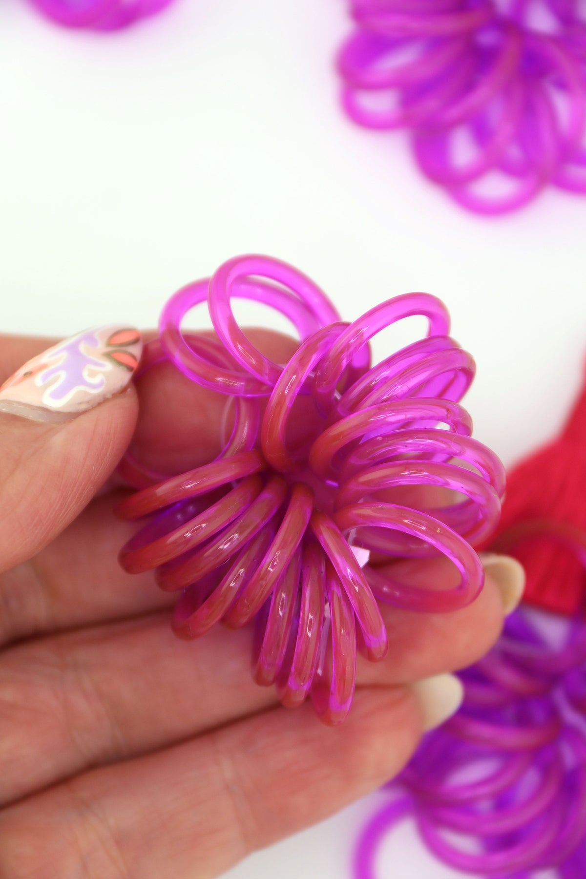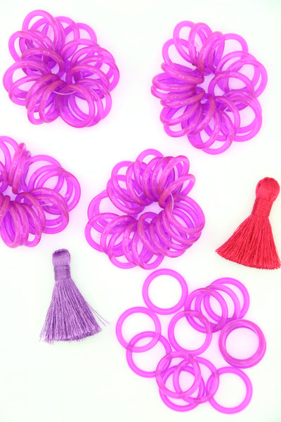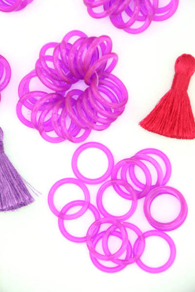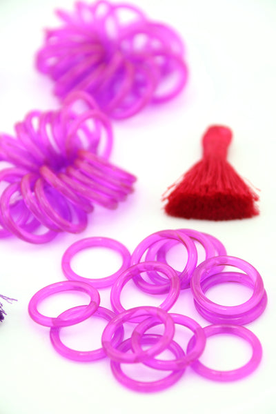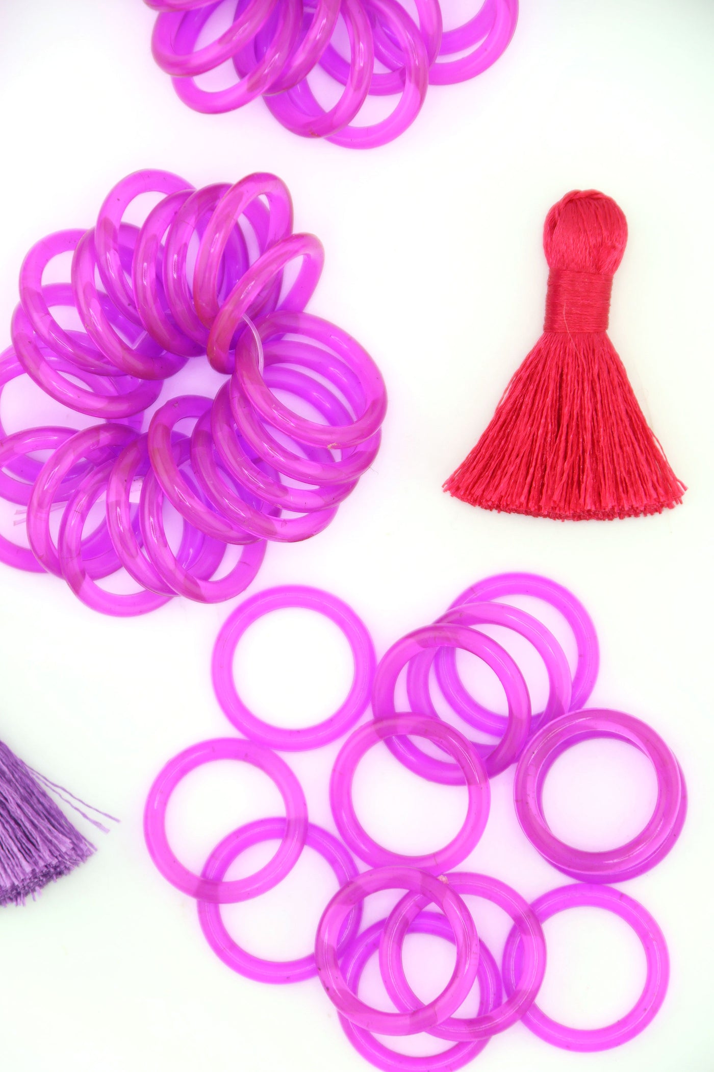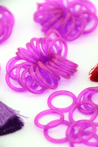 There's something so satisfying about vintage colors. The purple neon glow on these makes my inner 1980's heart skip a beat. These vintage resin rings are perfect for all kinds of creative and crafty endeavors. Wonderfully lightweight and high quality, and in limited stock.